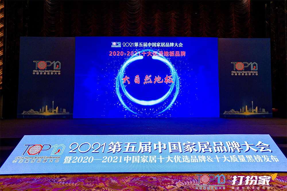 2021年7月19日下午,2021第五屆中國(guó)家居品牌大會(huì)在廣州隆重舉行,公開(kāi)發(fā)布“2020-2021中國(guó)家居十大優(yōu)選品牌”36個(gè)榜單,大自然家居旗下大自然地板品牌強(qiáng)大的品牌綜合實(shí)力與口碑,榮膺“2020-2021十大優(yōu)選地板品牌”稱號(hào)。