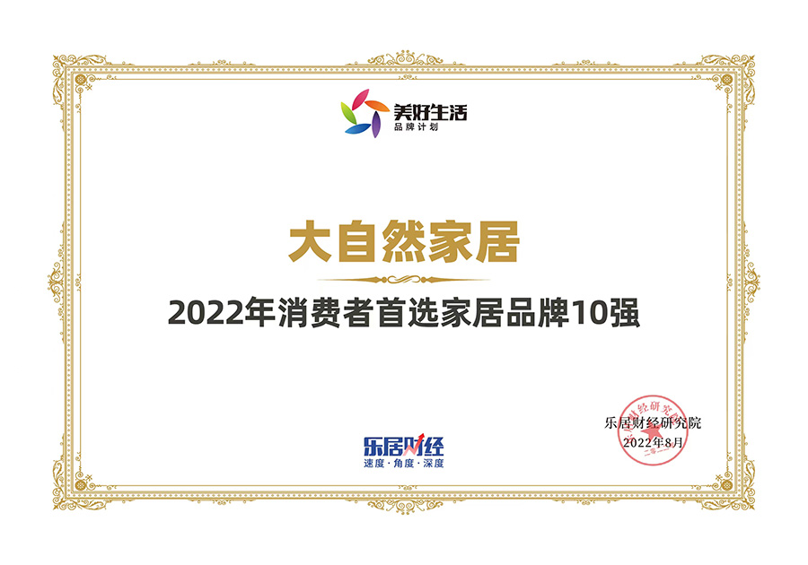 近日,以“追光”為主題的2022(第五屆)樂居財經(jīng)年度論壇暨財經(jīng)之夜在杭州落地。在現(xiàn)場,大自然家居榮獲“2022年消費者首選家居品牌10強”、大自然家居王道偉榮獲2022工匠先鋒提名獎。