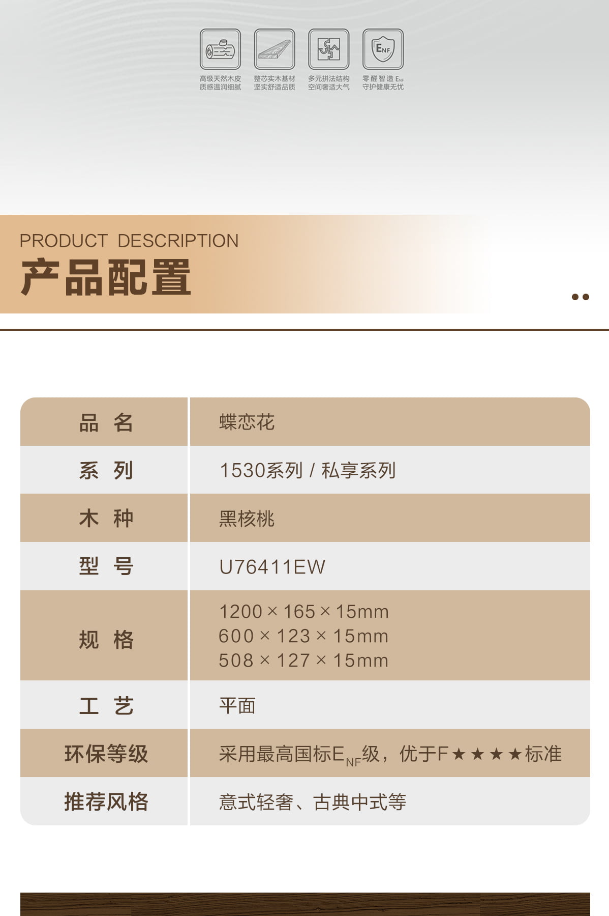 | 獨特工藝 | 芯實木 |
