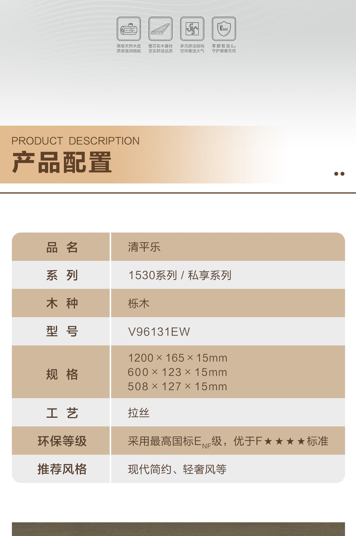 | 獨(dú)特工藝 | 芯實(shí)木 |